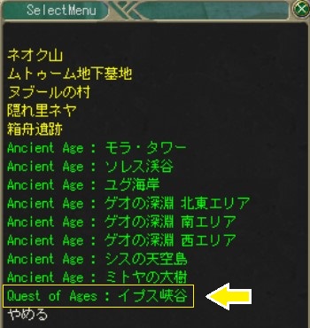 QoA:イプス峡谷行きの項目が出るようになります。これがカーレイですね。一度記憶を吹き込めばいつでも行けます。