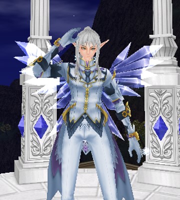 氷…確かにうちに「氷の貴公子」を自称しているという設定のキャラがいるぞ?実際、雪や氷にちなんだアイテムをせっせと買い集めて身に着けています。これなら少し手を加えるくらいで行けるかも?