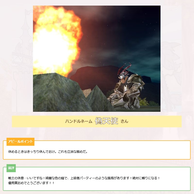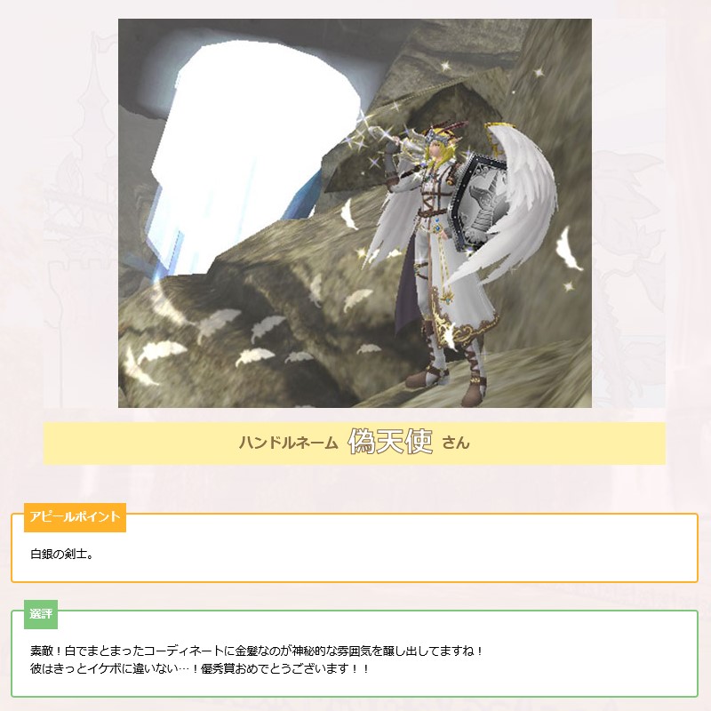はい、今回はファッション。公式で行われているファッションコンテストに関するお話です。ファッコンにつきましては、前に書きました通り個人的な目標は達成しております。なので、もういいかな~、と思っていたのです…が!