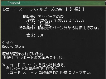 と白チャでぼやいていたのですよ。そうしましたらたまたま近くにいた方から突然のトレード。渡されたのはアル森のキノコ小屋へのレコ石でした。