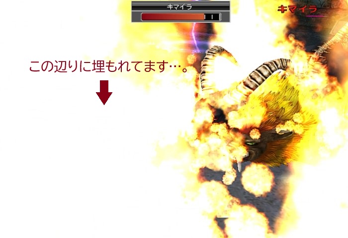 目が~!目が~!キマイラの炎のブレスで前が見えない~っ!(これでもエフェクトは最小です)