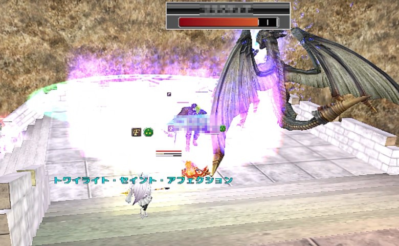 少しは防御や反射もできたものの、やはり大半はひたすらあたふたわたわた。ただ、千年竜の攻撃って見た目ほどには痛くないのですよね。ある程度の自前の防御力と火耐性に加えて、戦闘前にいただいたバフのおかげであったことは間違いないですが。もちろんヒールもいただけまして、何とか血煙は回避できました。