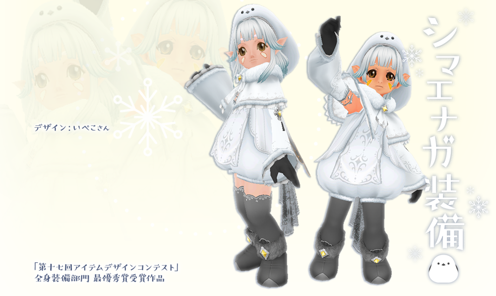 登場したのは去年の12月でしたので、ちょっと間が空いておりますが。第17回のデザコン全身装備部門の最優秀作品ですね。